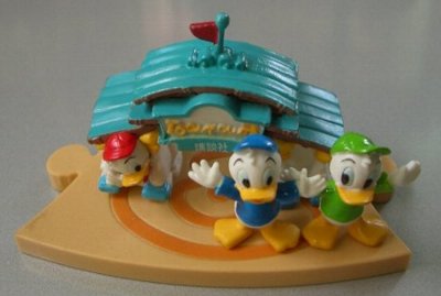 「東京ディズニーランド トゥーンタウン・ジオラマフィギュア」の「ドナルドのボート」「三匹の子ぶたとヒューイ・デューイ・ルーイのグッドタイム・カフェ」三匹の子ぶたってディズニーだったんだ。知らなかったな。今回のフィギュアは、あまりおまけとかにならないキャラも使ってますね。ドナルドは、必ずといっていいほど入ってるけど。