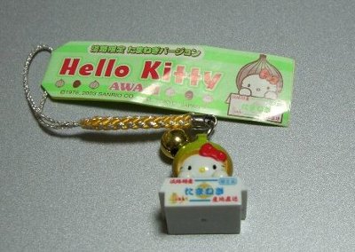 ご当地キティの根付け「淡路限定 たまねぎバージョン」をもらいました。これはファスナーマスコットも持ってます。箱からのぞいてるキティ、かわいいですね。