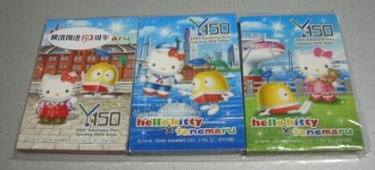 横浜開港150周年記念テーマイベント「開国博Y150」のキャラクタ―たねまるの「笛入マスコット(大丈夫)」「横浜開港150周年記念ピンズ」マスコットはふると音がしてかわいい~。そういえば愛知博でキッコロも同じようなマスコットあって買ったな。鞄につけると時々、音がなっておもしろい。ピンズはガチャガチャで全6種類。いいのあたったかな。
