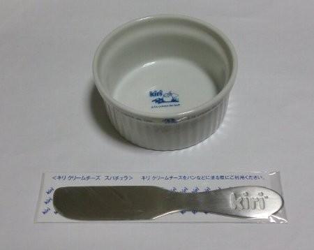 昨年やっていた「キリの幸せなひとときキャンペーン第2弾」の応募者全員もらえる「ココット+スパチュラセット」が届きました。これはキリクリームチーズのバーコード10枚でもらえました。他に10枚でマグカップ、25枚でプレート、カフェオレボウルがありました。一昨年の第1弾はマグカップをもらったので今回はココット+スパチュラセット。