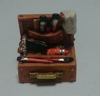 100均でみつけた「ミニチュアレジン ツールボックス ペイントボックス」塗料用具が入ってるね。