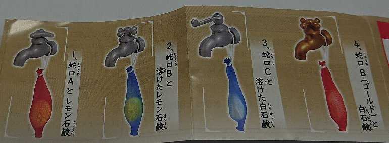 10月15日は世界手洗いの日。インフルエンザから風邪など感染の予防は石鹸で手を洗うことが重要でお金をかけずにすぐに取り組める予防策なので普及活動が行われます。手洗いに関するものの紹介。「学校の蛇口マグネット」のガチャガチャをしました。全4種類。「蛇口Cと溶けた白石鹸」でした。 【コンプリート】学校の蛇口マグネット ★全4種セット価格:1100円(税込、送料別) (2022/10/15時点)