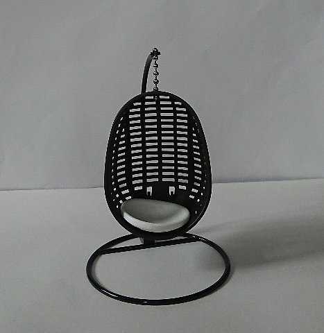 100均でみつけた「ミニチュア バンキングチェア」セリア。シルバニアファミリーの人形をのせてみました。