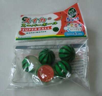 7月27日はスイカの日。スイカの縞模様を綱に見立てて、な(7)つのつ(2)な(7)(夏の綱)と読む語呂合わせから。100均でみつけた「スイカスーパーボール」キャンドゥ。5個。
