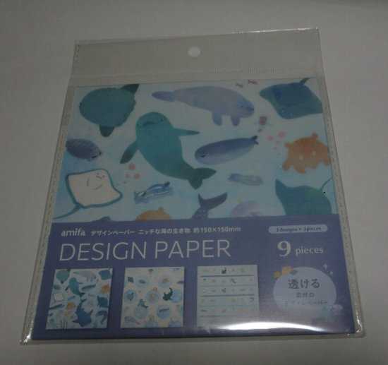 100均でみつけた「デザインペーパー ニッチな海の生き物」キャンドゥ。3柄×3枚で9枚入り。透ける素材。