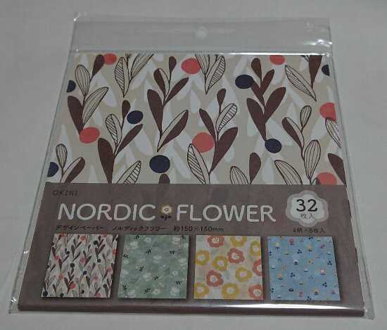 100均でみつけた「デザインペーパー ノルディックフラワー」キャンドゥ。4柄×8枚で32枚入り。