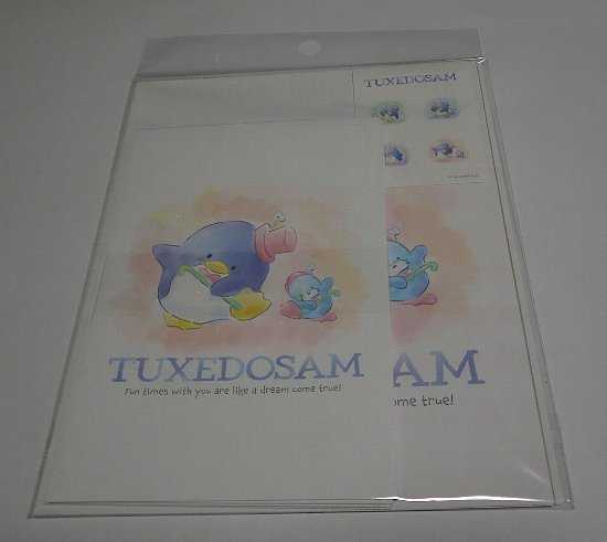 100均でみつけた「タキシードサム レターセット」エビスマーケット。便箋7枚、封筒4枚、シール。100均でみつけた「ミニメモ タキシードサム」キャンドゥ。100均でみつけた「タキシードサム ダイカットペーパー」12枚入り。キャンドゥ。100均でみつけた「マスキングテープ タキシードサム」全6種類。キャンドゥ。15mm×3m。