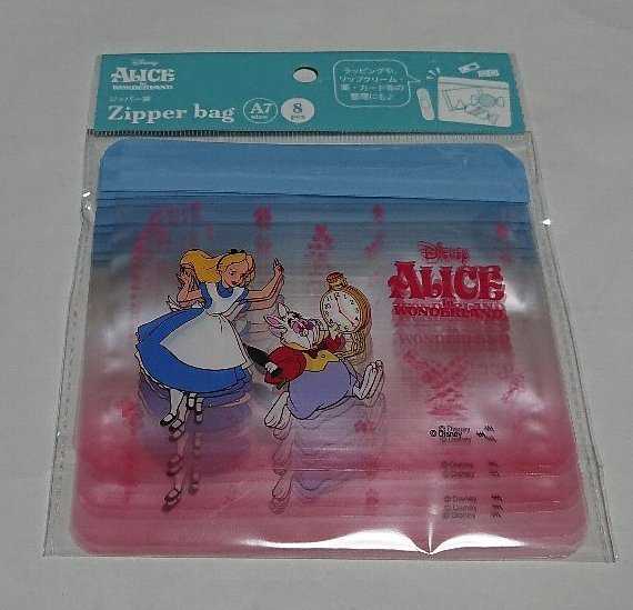 100均でみつけた「不思議の国のアリス ジッパー袋」A7サイズ8枚入り。セリア。