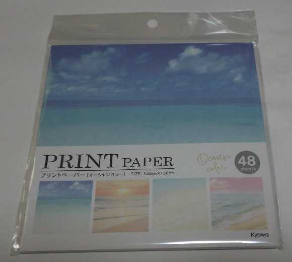 7月31日はビーチの日。な(7)み(3)のい(1)い日の語呂合わせ。100均でみつけた「プリントペーパー オーシャンカラー」キャンドゥ。4柄×12枚で48枚入り。