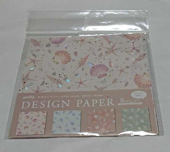100均でみつけた「デザインペーパー milky ocean」キャンドゥ。4柄×2枚で8枚入り。キラキラ箔押し。