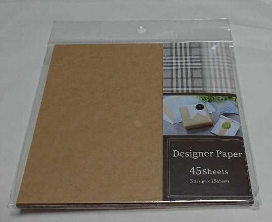 100均でみつけた「デザインペーパー クラフト、チェック」ダイソー。3柄×15枚で45枚入り。