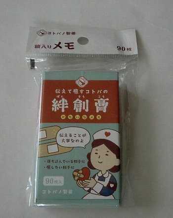 7月24日はセルフメディケーションの日。セルフメディケーションは自ら軽い症状を判断し一般用医薬品を使って手当てすること。1週間の7日間、1日24時間行うため7月24日に。100均でみつけた「ボックス入りメモ コトバノ製薬 絆創膏」90枚。キャンドゥ。