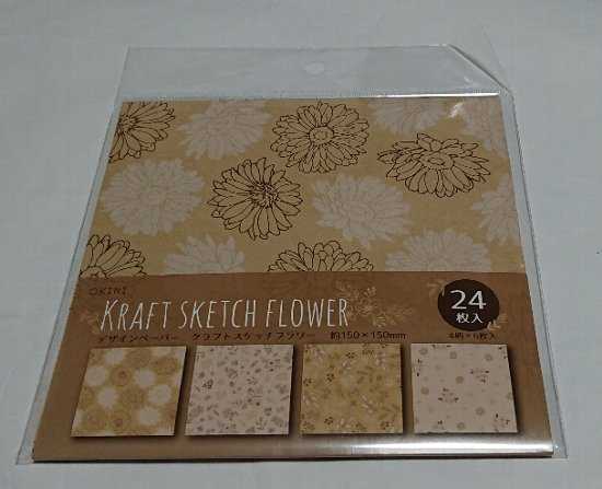 100均でみつけた「デザインペーパー クラフトスケッチフラワー」キャンドゥ。4柄×6枚で24枚入り。
