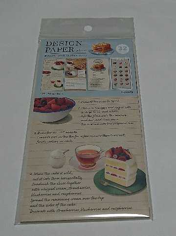 100均でみつけた「デザインペーパースリム デザートレシピ」セリア。4柄×8枚で32枚入り。
