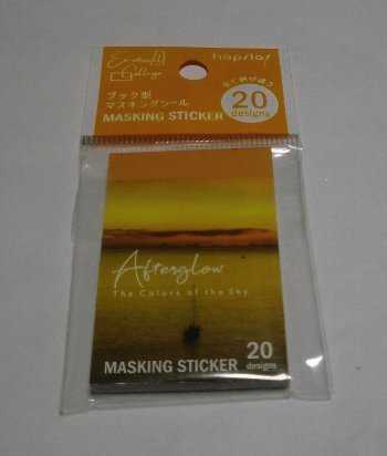 100均でみつけた「エモーショナルコラージュ ブック型マスキングシールブック The Colors of the Sky Afterglow」「エモーショナルコラージュ ブック型マスキングシールブック The Colors of the Sky Sunset」エビスマーケット。全柄違い20枚。