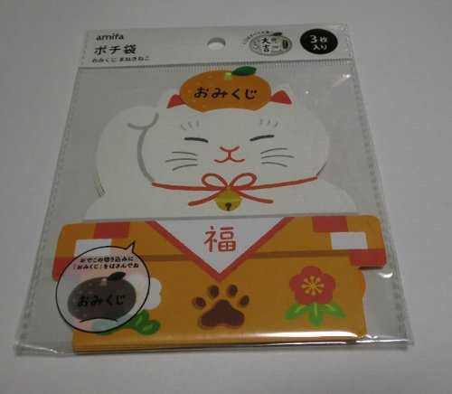 9月29日は招き猫の日。くる(9)ふ(2)く(9)と読む語呂合わせ。100均でみつけた面白いポチ袋。「ポチ袋 おみくじまねきねこ」3枚入り。エビスマーケット。