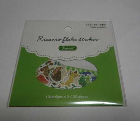 100均でみつけた「Ricamo フレークシール Forest」キャンドゥ。10柄×3枚。マスキングテープ素材。