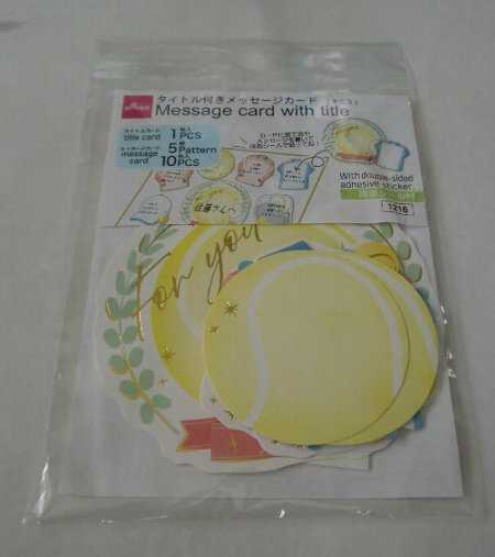 9月23日はテニスの日。テニスをするのに最適な日として秋分の日を記念日に。100均でみつけた「タイトル付きメッセージカード(テニス)」ダイソー。タイトルカード1種×1枚。メッセージカード5種×2枚。両面シール12枚。