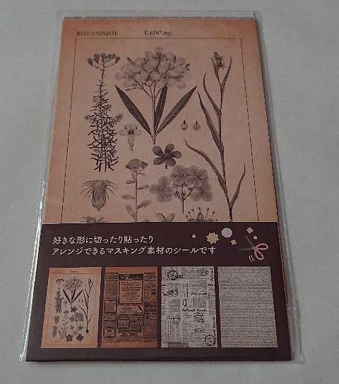 100均でみつけた「マスキングシート ヴィンテージブック」セリア。マスキング素材のシール。4柄×2枚で8枚入り。
