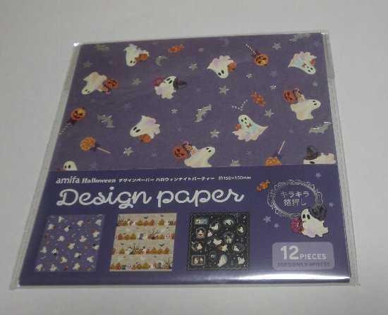 100均でみつけた「デザインペーパー ハロウィンナイトパーティー」セリア。3柄×4枚で12枚入り。キラキラ箔押し。