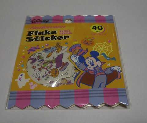 100均でみつけた「ミッキー&フレンズ フレークステッカー ハロウィン」セリア。8柄×5枚。