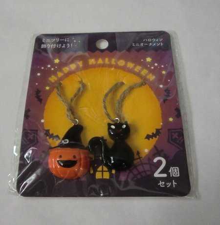 100均でみつけた「ハロウィンミニオーナメント カボチャ&黒猫」セリア。