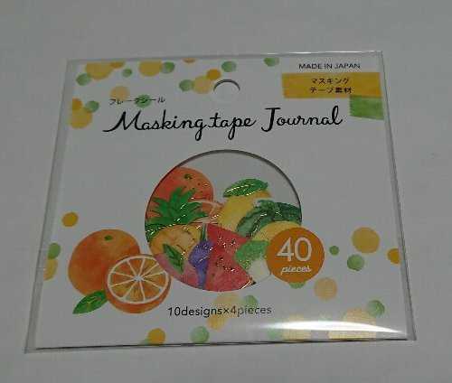 100均でみつけた「フレークシール フルーツ」キャンドゥ。10柄×4枚。マスキングテープ素材。