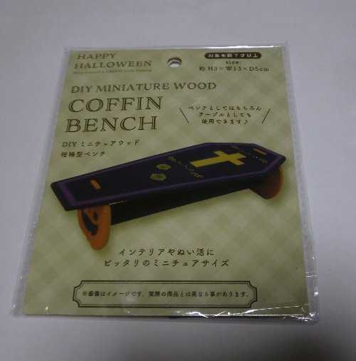 100均でみつけた「DIY ミニチュアウッド棺桶型ベンチ」8本入り。キャンドゥ。