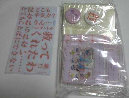 缶バッチ×2個、アクリルスタンドが入ってます。