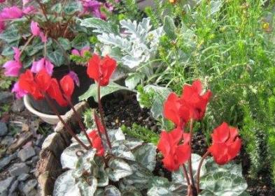 こんな雨降りにひときわ鮮やかなガーデンシクラメン