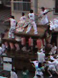 だんじりと言えば岸和田が有名で、そこはたしか9月15日辺りだったと思うけど、私の住んでいる地域は今が、だんじりの季節なんです。今日、家の前をだんじりが行ったり来たり大暴れしてました。地区ごとにだんじりが何台にも分かれてます。来週が本番!宮入といって、たくさんのだんじりが神社に入っていくんです。でも。。。その宮入するまでが長い!入るのかなぁ~・・・と思えば、戻っちゃうし。じらされるのよね~。おととし見に行ったけど、私の地区のだんじりは最後の宮入だったから夜中12時でした。友達の最終電車に間に合わないので、結局見ずに帰ったよ。今年は見にいけるかな?たしか14日?