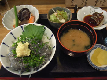 生しらす丼食べたい!というわけで、どこにしようか・・・?と相談してたら、けっこう離れた距離からおばちゃんが呼び込み(笑)