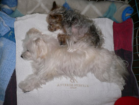 ベルは今日も付き添いで付いて行ったのですがチェリーが少し鳴いたので心配と、混んでいて待ちくたびれたので、帰って食事をするとチェリーをいたわって寄り添い眠っています(^-^)