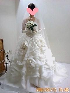 本日、お仕事がお休みだったのでウェディングドレスを選びに行ってきました本当は申し込んだ挙式パックに組み込まれていて、ウェディング会社で選ぶのが基本なんだけど・・・高いんです。基本パックの中には8万円分のドレス代は入っています。でも、8万の基本料金でおさまるドレスはなーんかフリルとかもついていなくて下着みたいな感じだったので。。もし、ウェディング会社で自分の気にいったものを選ぶと25万以上。そこから基本料金の8万円をひいて17万とします。でも、簡単な予算を作ってもらったら、だいたい皆さん、小物類も結局なんだかんだ4万とかかかっちゃうみたいで。そしたら私のものだけで20万超えるんです。それに新郎の分をたしたらなんだかんだで30万超えちゃう計算なんですよ。もちろん、うまく基本料金からはみでないでやる人もたくさんいると思うのでその辺りは個人差があると思いますのであくまで私の場合ということで。・・というわけで、私はウェディング会社にドレスを頼むのではなく、他社で探して持ち込みをしよう!と決断したのです。持ち込みなので機内とかに持っていくからちょっと荷物になるし大変だけど、着たいものを着たいし!その上お安くすむなら尚更ね~。そして、夜な夜なネットで色々みていたら、なんとなんととてもいいところを見つけたんですとても良心的なところで、スタッフさんも感じがよくて、一着ずつ試着するごとにもっていったデジカメで写真を色々撮ってくれて、さらに携帯でも撮りますよ~って言ってくれて。ちなみにお義母さんと一緒に行ったのでママもママのデジカメ&携帯で写真撮ってました。4着着ました。私はプリンセスラインが好きで。とりあえずふわふわしてたりかわいい感じがすきなのでそういうのを3着選びました。すでにホームページ写真で目をつけていたものなんですが。最後の一着は、雰囲気が違うものも着てみようかな・・と思って清楚な感じのものをセレクトしました。では画像~デジカメ画像が取り込めなかったので、携帯画像ですが・・・。1着目バラ? お花がついていてボリュームがあるドレスです。ちょっとコテコテしてるかなって感じはあったんですが、ホームページで見たときから一目ぼれ♪写真うつりは抜群でした。一着目に試着したので感動も大きかったドレス。お値段は12万。前バックスタイルは編み上げになっています。写真じゃわかりにくいけど・・・。2着目1着目ほどの感動はなかったなぁ。。というのも、ホームページでみたよりも、こんな感じか~・・っていうのと、ショップの店員さんも5万円の値段かなって感じだと思いますよ~って言っていたので。でもかわいかったのは確かです!!バック 3着目写真じゃ伝わらないけれど、キラキラ素材でした。リボンとか、レースとかがついていてとにかくかわいいです。かわいいものがすきな人には最高だと思います。ドレスはこれが5万?!って思うくらい感動ものでした4着目私にしてはめずらしくふりふりしていないものを選びました。でも、着てみるとね、素敵でした!!清楚な感じでウェディングドレスだ~っていう感動ものでした。後ろが長くてこれまた素敵広々として長いバージンロードには最適かもです。ちないみにお値段は12万。結局、今日、ドレスが決まると予想していなかったんですが・・・決めました(笑)一着目のものにしました。やっぱり結婚式は写真メインなので(笑)式に参加してくれるのは両親と相方君の弟さん夫婦&子供のみなので、他に実際にみる人はいないし。こっちで楽しみにしているばーちゃんたちに見せるのは写真なので、写真うつりがゴージャスに見えるこれ!!って思い迷いに迷って決めました。ショップの方は1着目か4着目がいいと思いますよ♪って意見をくれて、ママもどれもかわいいけど、写真のことを考えたらね。。ということでの決定。どれも捨てがたかったんです。全部着れるなら全部きたーいって思えるものでした。ちなみに小物(ティアラとか、靴、ベールなど)も含んでの12万円!!そんでもって、相方君のタキシードも一緒に頼みました(本人いなかったけど独断と偏見で決定)ドレスとタキシードをたして・・・結果、そのお値段。なんと15万円なり。ちなみに相方君タキシードは単品で頼むと5万円です。中のシャツとか靴も含んでね。そんでもってのそんでもって、海外挙式な上に、成田じゃなくて関空使うので、郵送してもらうことに。郵送料5000円もこみで15万です。なんて良心的なんだ~私はドレスとタキシードのセットプランを適用したので、ドレス12万+タキシード5万の17万が15万になりました。ドレスは5万か8万か12万のものしかないので、さらにお得にするならば、5万か8万のドレスにタキシードを頼むとセットプランで10万円です!!ウェディング会社で頼むのに比べたら小物もすべて含めてだから安いでしょ?!持ち込み料とかのことがあっても個人的には安いと思うんですけどね~。しかも私は若干お直ししな
