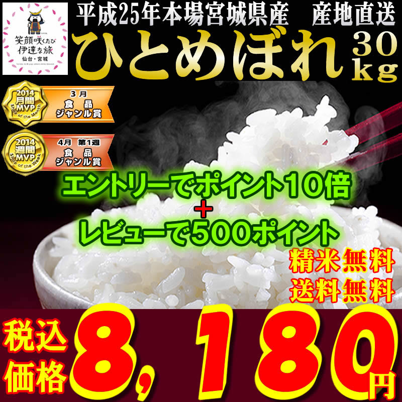 7分づきで!今月はこのお米ポチ 6/1(日)00:00~6/5(木)03:59期間限定価格送料無料!平成25年宮城県産ひとめぼれ (30kg)【選べる 精米 選択】【玄米 5分 7分 白米】【米 送料込み】【RCP】