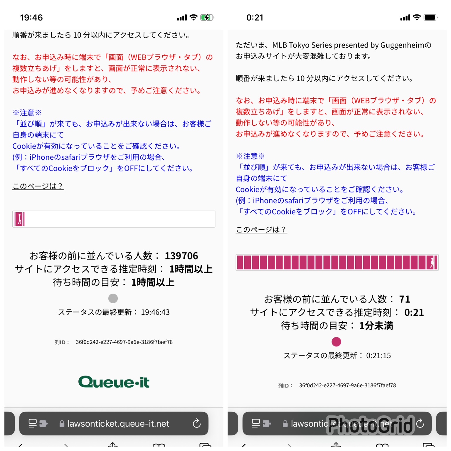 約14万人待ち。4時間30分ぐらい待ってチケット申し込みサイトに辿り着けました。🤣