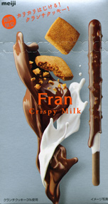 <評価> ★★★ <コメント>チョコレート部分はかなり濃厚な感じがした。ベースのココアビスケット部分のサクサク感がたまらない。その上にコーティングされているチョコレートもホワイトチョコとミルクチョコレートの二段重ね!!そりゃ濃厚だ…。ただ残念なのが、一番上のミルクチョコレートに混ざっているクランチクッキー…これがベースのココアビスケットのサクサク感に完全に負けている。おかげでまったく存在感が…ない。もう少し自己主張しても良かったのではなかろうか? 個人的にはミルクチョコレートが苦手なのだが、このクランチクッキーという部分にかなり惹かれた。しかし…無残にも希望は打ち砕かれたのだった…とほほ。 私の淡い期待を返してほしいです。 そんな感じなのにもかかわらず、得点が低くなかったのは…私はもともとFranが大好きだから…という贔屓から(笑)。今後の新商品に期待です。