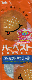 <評価> ★★★ <コメント>ハーベストはもともと好きなタイプのお菓子である。サクサクと軽い歯触りが何ともたまらない。 さて今回は[アーモンドキャラメル]という事で、かなり期待してしまった。期待しすぎた…といってもいい。 味は普通に美味しい。ちょっと塩味が効いていて、しょっぱい感じもある。味で例えるなら…ココナッツサブレ!! まさしくあの味だ。 評価が低めなのは、アーモンドキャラメルというよりもココナッツサブレ的な味だったから。ただそれだけだ。先入観なしに食べたら、かなり美味しい。ちょっと残念だけど、次回新フレーバーに期待!