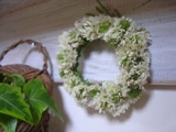 雨上がりにおちびを抱っこしてお散歩。雨が無く予定の無い日の午前中は、よく抱っこでお散歩をします。(あまりお出かけの予定はないちぃまま&おちびです^^;)お散歩しながらあたりを見渡すと、あちこちに咲いていたシロツメクサが茶色くなってきて、もう終わりに近づいていました。『シロツメクサも、もう終わりか~』なんて思いながら家に戻りおちびをおんぶに変えて、再度お散歩へでました。そして、シロツメクサを少し摘んで、小さなリースを作りました。来年は、おちびの、花かんむりと首飾りを作るからね。また白いかわいらしいお花をたくさん咲かせてね^^
