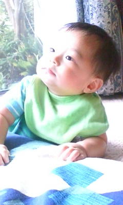先月から後ずさりや背中で這うことはできていて、今月に入ってから微妙にずり這いらしきものが時々見られるようにはなっていたのですが…