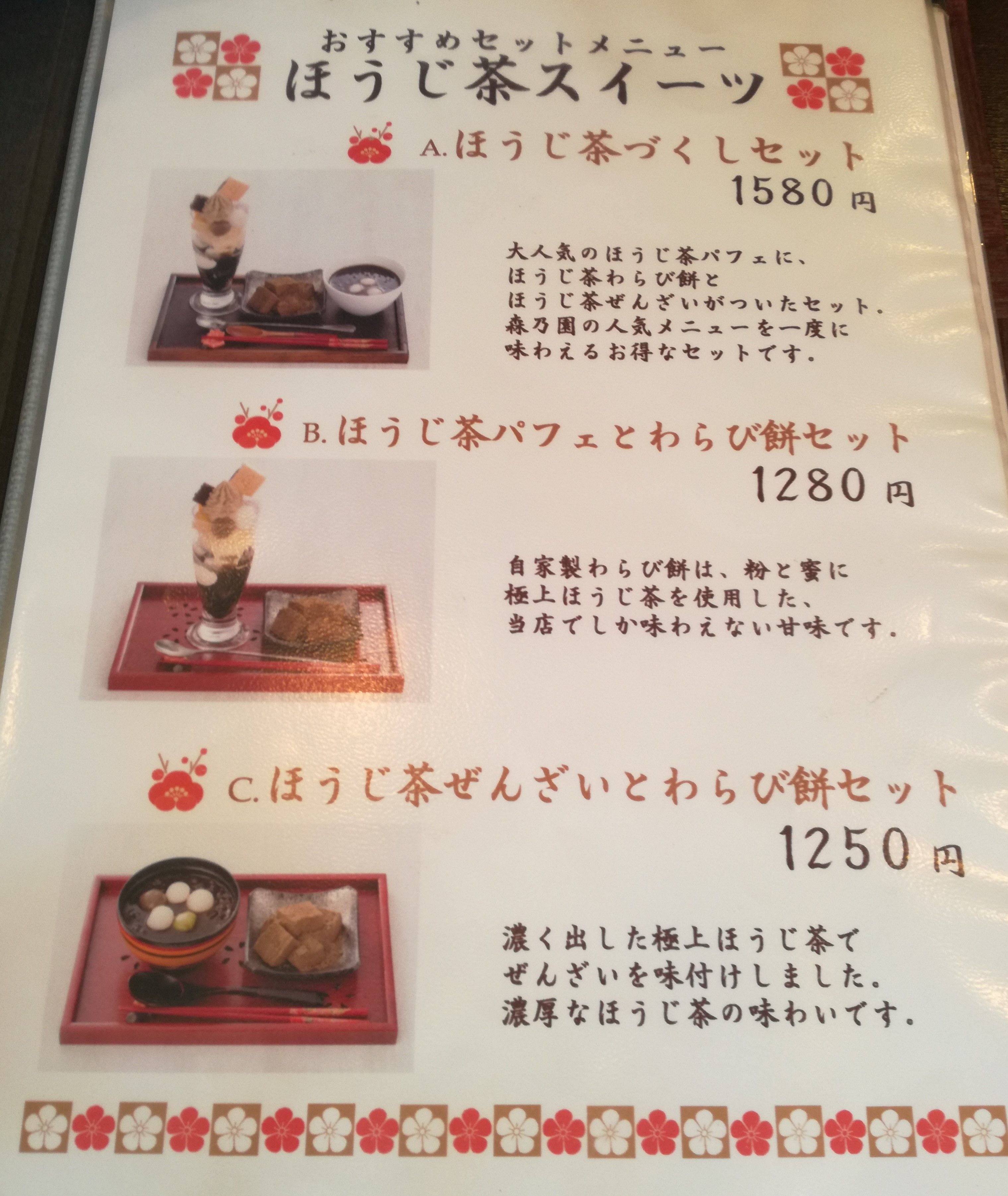 甘酒横丁をウロウロしてから、ほうじ茶の名店森乃園さんにお茶にやってきましたたまたま並んでいないときに入れましたが、入ってからは結構待っている人が目に入り、常に満席状態でした。老若男女に外国人観光客…いろんな方に人気みたいです。ここに来たからにはほうじ茶スイーツ全部食べたくなっちゃって、ほうじ茶づくしセット(\1580)を注文しました。ほうじ茶づくしセットほうじ茶パフェ、ほうじ茶わらび餅、ほうじ茶ぜんざいのセットですほうじ茶パフェはほうじ茶餡が入った最中、栗、ほうじ茶白玉、白玉、ほうじ茶ゼリー、ほうじ茶アイス、バニラアイス、ほうじ茶あんこ、ほうじ茶寒天、ほうじ茶シロップなどで構成されていて、パフェだけでほうじ茶三昧。どれもそれぞれにほうじ茶の味が濃く美味しいです母曰く、「家でほうじ茶ゼリーを作ろうとしたことがあったけど、こんなに濃く出来なくって、濃くしようとすると苦くなってしまった」ということ。苦くなく、香ばしい味と香りだけが残る老舗ならではの技があるんでしょうね。ほうじ茶わらび餅はほうじ茶風味の黄な粉がたっぷりとわらび餅にかかっています。もちもちプルンとしたわらび餅はなかなか美味しいですし、ほうじ茶がよく合います。ほうじ茶ぜんざいはほうじ茶あんこにほうじ茶白玉。これもよく合っていて美味しいですが、ちょっとほうじ茶のざらざら感があんこに残っている気がして気になりました。どれも一品ずつは美味しいのですが……最終的にはちょっと飽きましたどれも結構甘さがしっかりしていますし、飲み物も店内の香りもほうじ茶三昧でしたからね特に、パフェの底に残るほうじ茶シロップの甘みの強さとほうじ茶ぜんざいのあんこの甘みが最後の方に残ると「正直多いな…」という感じでした。アイスとかゼリーとか食べているときは甘さも控えめで滑らかでほうじ茶の味がしっかりして美味しいなと思っていたのですが…。全部食べたくても、欲張らないことが大事だなと改めて学びました。でも、一品一品は美味しかったですお土産に買った干支ほうじ茶も美味しかったですごちそうさまでした。 森乃園(もりのえん)東京都中央区日本橋人形町2-4-9 http://morinoen.jp/https://tabelog.com/tokyo/A1302/A130204/13041947/私が書いたレビュー→https://tabelog.com/rvwr/000372100/rvwdtl/B330329648/お茶 ほうじ茶 焙じ茶 茶葉 静岡茶 日本茶 がぶがぶ飲めるほうじ茶ティーパック100個入 メール便配送 送料無料 がぶ飲み 業務用 お徳用 お得用 ティーバック ティーバッグ まかない 母の日 ギフト お茶葉 国産 牧之原茶 健康茶 静岡県 ポッキリ ぽっきり ■6983