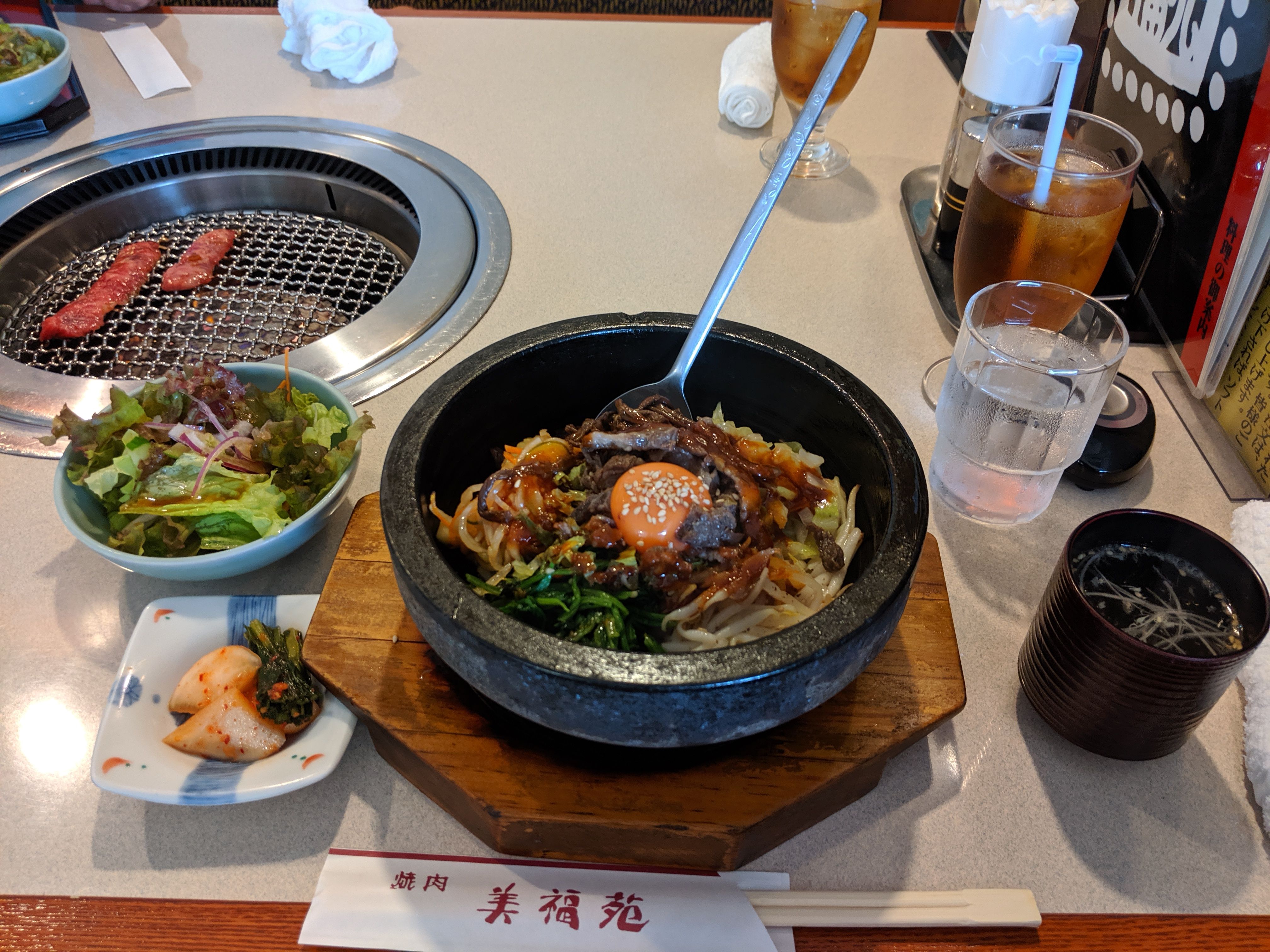 焼肉食べたいね~…ということで、子連れでこの間やってきた東船橋の美福園さんに車で寝た子供を抱っこしながら、お店に入ると今回はテーブル席に案内されました。結構混んでいたから、お座敷いっぱいなのかな。メニューが無かったので、テーブル掃除をしていた店員さんに「メニューをいただけますか?」と頼むと「勝手に座らないで頂けますか!把握できなくなりますので」と言われちゃいました…びっくりして「あの…」としゃべりだそうとする前に「〇〇さんが案内したんですよ」と他の店員さんが助け舟を出してくれました(ホッ)いつも案内してくれる人とタイプが違う男性だなと思ったけどホール担当の人じゃなかったんだろうな。一言謝ってほしかったけど、忙しくてテンパってたんでしょう…ホールバイトやったことあるから気持ちはわからなくもない…まぁしょうがないね。ちなみに、いつも人手不足気味な気はしますけど普通に接客してくれて、子連れで行きやすい良いお店ですよ~そのあと、今回も「ブログ用に写真撮っていいですか?」と「離乳食持ち込んでいいですか?」はきいたけど両方ともOK。たまに来るお店だから毎回は聞いてないけど。両方ともOKなお店は、個人的には本当好き。ありがとうございます。今回の注文はまたもやランチの石焼ビビンバ。ここの石焼ビビンバ辛すぎないけどしっかり味付けで具沢山で美味しくて好き。しっかり焼き付けた後の、焦げ目が美味しいのよねごちそうさまでした。また来まーす。焼肉 美福園千葉県船橋市中野木1丁目5−1https://yakiniku-mifukuen.gorp.jp/