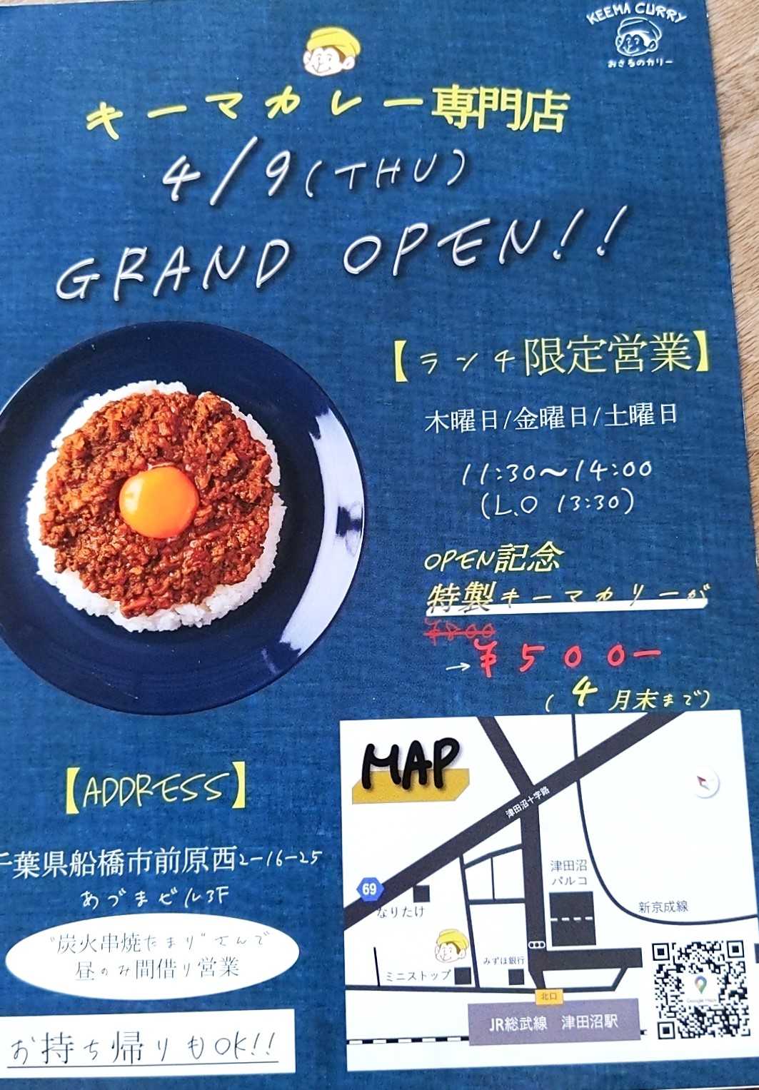 津田沼駅北口の飲み屋街に、新しい間借り店舗が4月9日OPENのキーマカレー専門店おさるのカリーさん🍛こんなご時世で新規オープンなんて大変そう…テイクアウトをやっていてOPEN記念でお安いらしいので行くっきゃない。またまた在宅ワークのお昼休み中の主人を派遣して買ってきてもらいましたチーズキーマカリーとスタンダードキーマカリー。道に置いたテーブルに鍋を出して売っていたそう…そんな大変そうなのにキーマカリーは500円だったそうで、努力に頭が下がる思いです。私はスタンダードキーマカリー。真ん中のくぼみに、生卵を割り入れていただきますしっかり香るスパイス。結構辛いけど、唐辛子のようなホットな辛さよりもペッパー系のピリッとした辛さが強い感じかな。うん美味し最近流行りの間借りカレーでよく見る超個性的な感じではなく、日本人が好きそうな正統派のキーマカレーだと思います。ごちそうさまでした。食べよう船橋!!食べよう船橋!!頑張れ~おさるのカリー千葉県船橋市前原西2丁目15−21 あづまビル 3F 炭火串焼たまりさんで間借り営業2023年現在、休業中のようです。お肉屋さんのキーマカリー カレー キーマカレー セット ポークカレー 大人の辛口 クリスマス ディナー オードブル パーティー お正月 お取り寄せグルメ お取り寄せ グルメ ご飯のお供 ごはんのおとも 国産豚肉 お肉 肉 ココナッツミルク