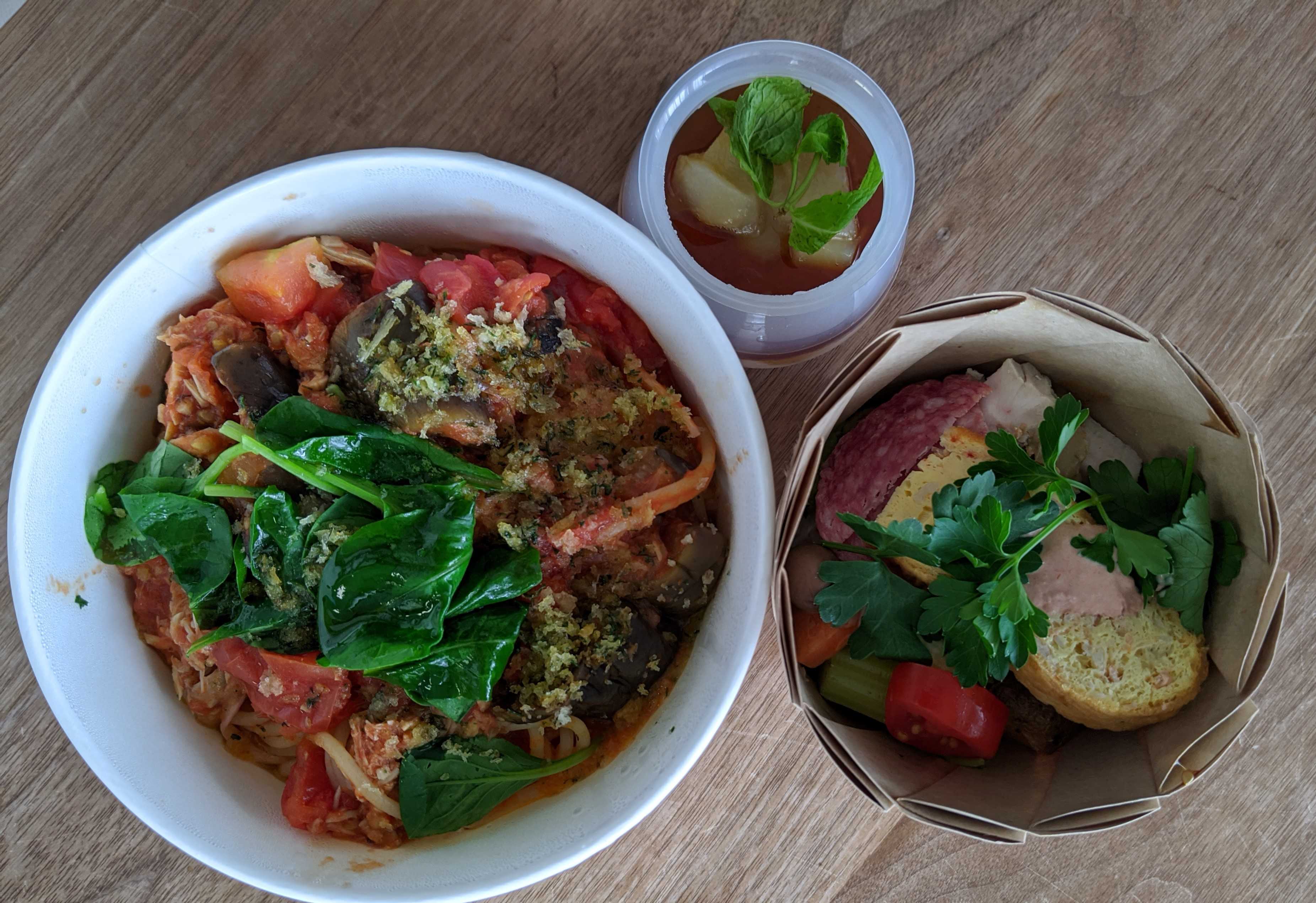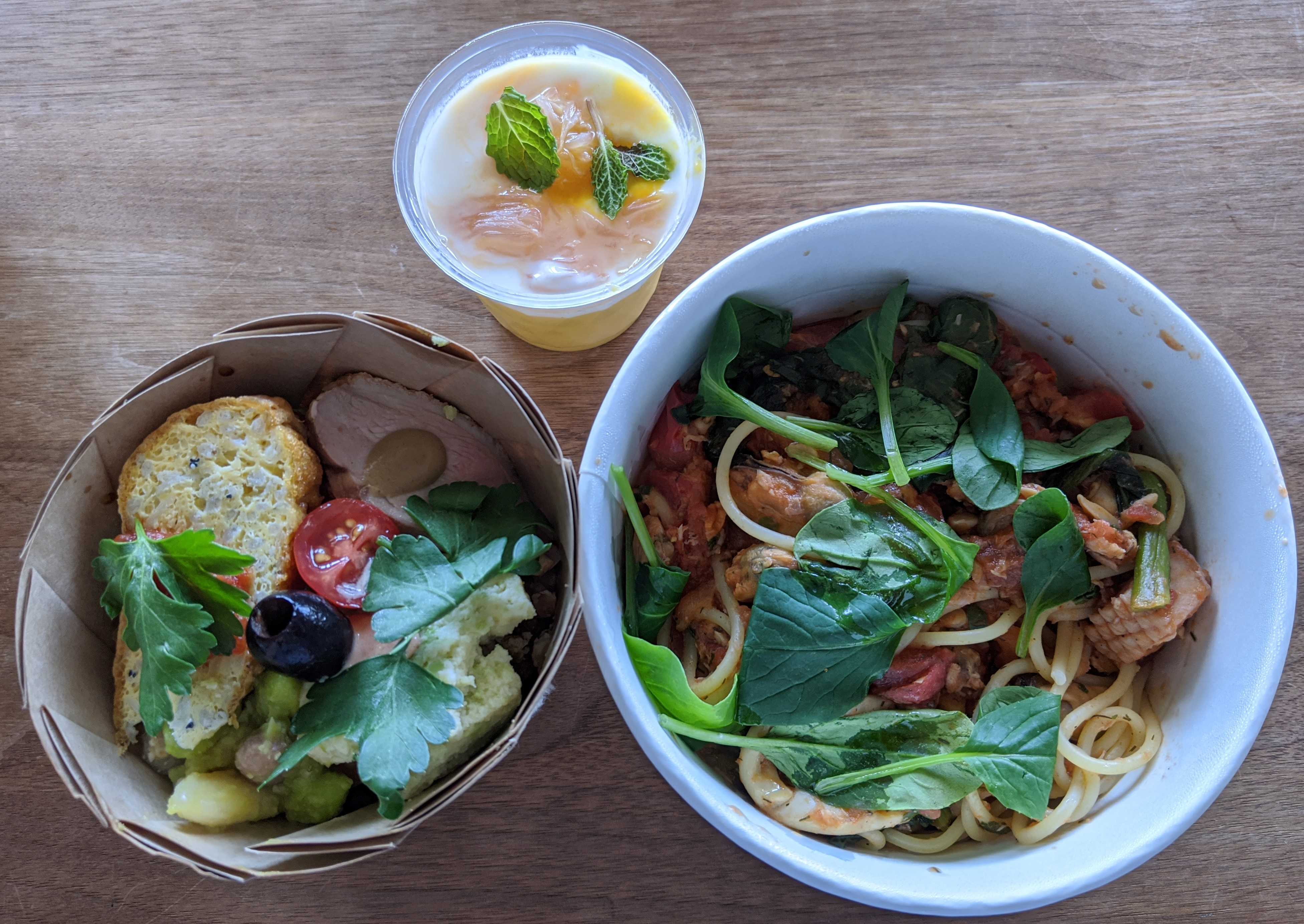 今日も主人の在宅勤務のランチにクラッカイタリアンさんのテイクアウトを利用してみました。子供用の辛味抜き対応や1.5倍盛りをしてくれるから、子供にもあげやすくて助かってます。ちょっと遠くても我が家的には行く価値あり今回もテイクアウトパスタセット(1300円+税)をプラス500円+税して1.5倍の大盛りパスタもしてもらって、子供も食べられるように辛味抜きにしてもらいました。パスタは粗挽きにした海の幸と青菜のトマトソース『ラグーペスカトーレ』 で和えるスパゲティを、デザートは『完熟マンゴープリン』 柑橘のマリネ パッションフルーツソースを選びました。いか、海老、アサリ、ムール貝、白身魚などなどいろんな魚介が小松菜と一緒にトマトソースと和えられていて美味しここのパスタはテイクアウトでも具沢山2歳息子も大好物だけど、1.5倍盛にすれば惜しげなく分けられます。テイクアウトでもこういう柔軟性があるのは本当にありがたいです。今回も美味しかったです。ごちそうさまでした。食べよう習志野頑張れお店クラッカイタリアン(CRACCaITALIAN)千葉県習志野市奏の杜2丁目4−1http://cracca-italian.com/