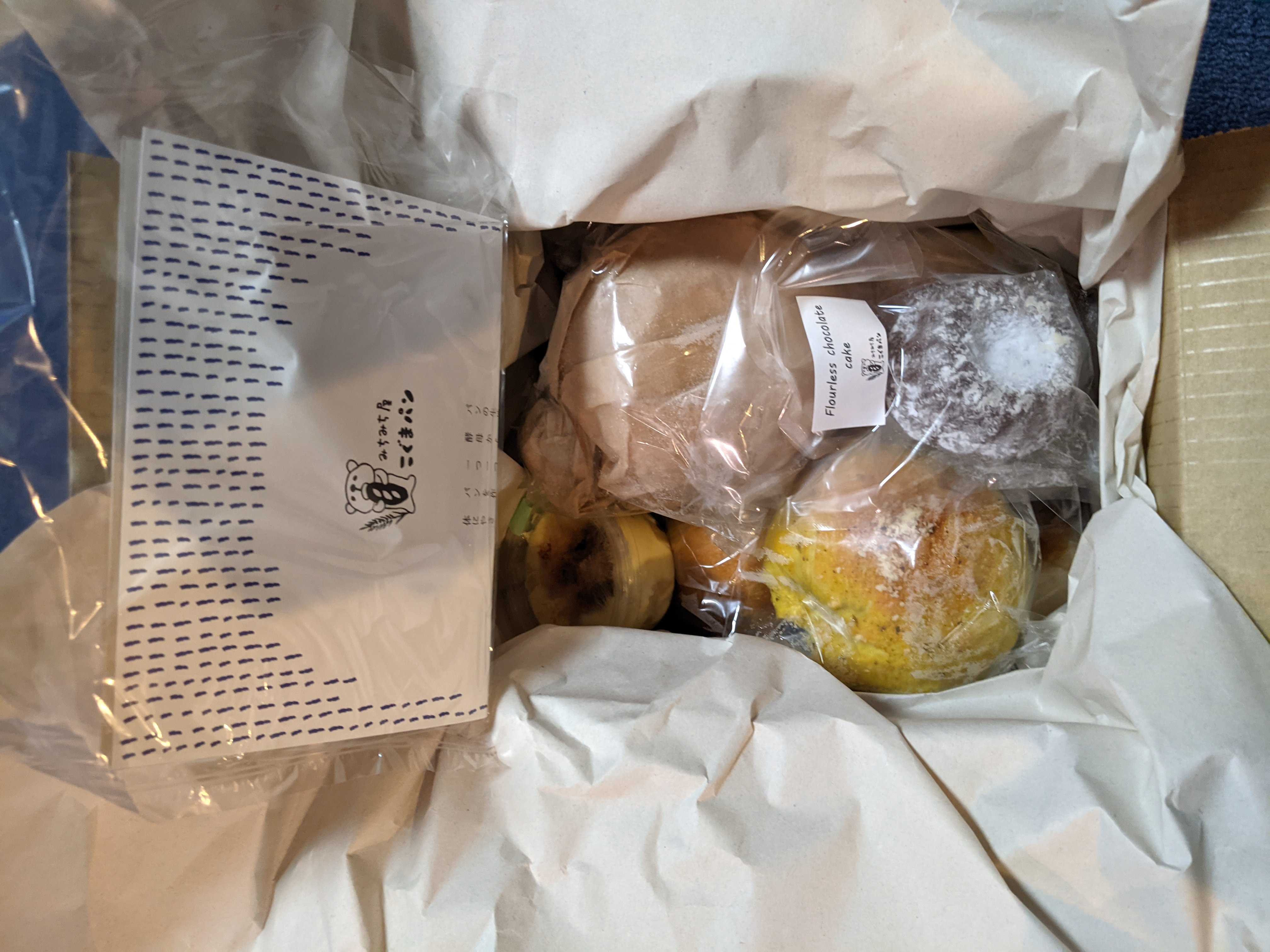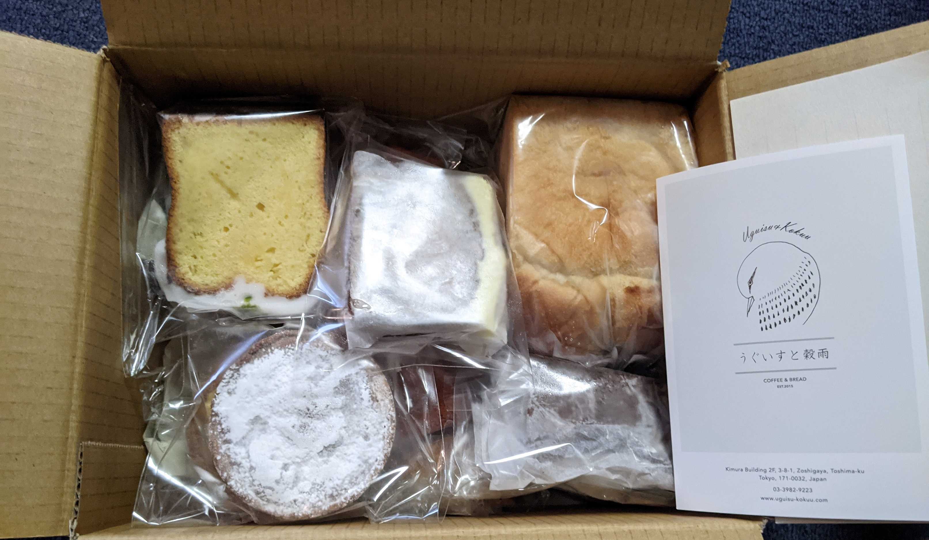 今年の1月16日、スイーツパン好きの実姉から「うぐいすと穀雨さんが通販やっているよ」とLINEが。人気店だし売り切れかと思ったけど、24時間中に受信したすべてのメールに対して発送をしてくださるということとてつもなく大変だろうけど、ありがたい結局500通以上のメールが来たらしいちなみに12時からの受付で14:43にメールしたら、250番でした。そんな250番はいつかな~と気長に待っていたら、昨日発送準備が整ったという連絡があり、今日届きました待ってました~ありがとうございます🍞パンとケーキと焼き菓子セット🥯(5500円+送料+梱包料)◯まいにち◯シナモンロール◯あんぱん◯ハーブのフランスパン◯わっか(ベーグル)◯チョコスコーン◯紅茶スコーン◯キッシュ◯タルト○マドレーヌ○フィナンシェ○おたのしみケーキ 3種→ショコラ・テリーヌ、パウンドケーキ(シトロン)、キャロットケーキの14個入りでした。5500円というお値段に尻込みはしましたが、食べたかった食パンも入っているし、美味しそうなものばかりだし、子連れで千葉から東京に行くことを思うと安いそして、まさかの手書きのお手紙が入っていて心が温まりました。千日紅(かな?)みたいな可憐な花の一筆箋で、すごい注文数だったのに、一つ一つ丁寧に作っていらっしゃるからなんでしょうね。◯あんぱん自然解凍→リベイクしていただきました。パクリと食べると、漉し餡にクリームチーズが入ってた嬉しいビックリ。原材料見たら書いてあったけど、見ずに食べてたから「漉し餡かな~?粒あんかな~?」で頭一杯だったwカリッとして、ふわもちっとした優しい生地の中に、滑らかこしあんとクリームチーズ。和の柔らかい甘味とクリームチーズのまろやかな酸味とコクがピッタリ小さかったけど、5倍サイズでもペロリと食べられそう。美味しかったです◯わっか(ベーグル)自然解凍→リベイクしていただきました。ムギュって詰まっていて、優しい塩気があって噛むとほのかに甘みも出てくる素朴な生地。シンプルだけど奥深き美味しさ○食パン(まいにち)自然解凍→リベイクしていただきました。結構強めにリベイクしてコンガリとさせるとカリッとザクッと。中はしっとりもっちり…なのに軽い感じだからパクパク食べちゃう何もつけなくても美味しい…。3歳息子も何もつけずに完食しました。○シナモンロール自然解凍でそのままいただきました。上のアイシングがちょっと溶けてビニールに少しくっついていたので、慎重に取り出しました。甘くて幸せなアイシングがたっぷりと。シナモンシュガーがたっぷりと巻き込まれた割と固めでしっとりもちっとパン。シナモンロールにしてはしっかり焼かれた印象の生地で、シナモンシュガーの風味の中でも小麦の風味を感じます。ピスタチオも意外と効いていました。○キッシュ自然解凍→リベイクしていただきました。リベイクで周りは素朴にサクサク。アパレイユは卵感がしっかりしていてふんわりと。シンプルな中に、トマトの甘さやチェダーチーズのコクが光ります○チョコのスコーン自然解凍→リベイクでザクザク、中はしっとり。ザクザク、ザクザク美味しい食感。大きなチョコの固まりが甘くてとろけて美味しい。口の水分が無くなるので、紅茶にも合いましたが、甘さがしっかりあるから珈琲も合いそう○紅茶のスコーン自然解凍→リベイクでザクザク、中はしっとりして、湯気と一緒にふわーっと紅茶の香り。紅茶感は見た目ほど強くはないけれどちょうど良く感じ、生地に甘味もあって美味しいです○キャロットケーキ冷蔵庫解凍していただきました。酸味(チーズ+レモンかな)のあるアイシングがかかった、スパイスがしっかり香るふわしっとり生地。クルミが存在感があって噛むとコリコリ、スパイスもしっかりしていて美味しい○タルトシュクレ自然解凍でいただきました。ザクザクと焼きが強めの感じの芳ばしいタルト生地に、しっとりした優しい甘さのアパレイユ。シンプルなのに、良い素材を使っている感じでとっても美味しい○マドレーヌ自然解凍してそのままいただきました。しっかり焼かれた印象で表面は凝縮した美味しさがあり、全体にしっとり。割としっかりした甘さがあるかな。バターの甘い香りも美味しくて、一瞬で食べちゃった。○フィナンシェ自然解凍でいただきました。解凍しただけなのに、端っこがカリッと。もともとしっかり目に焼かれているんだろうけど、端っこに焦げと一緒に旨味が濃縮されていて美味し○ハーブのフランスパン自然解凍→リベイクしていただきました。原材料を見ると、ローズマリー、タイム、セイジ、フェンネルが入っているみたい。リベイクしていると良い香りが…外はさくっと中はしっとりふわりと。ハーブがしっかり香って美味し○パウンドケーキ(シトロン)自然解凍してそのままいただきました。レモンの酸味が効いたアイシングがたっぷりかかった、しっとり生地。生地自体は甘さ控えめだけど、アイシ