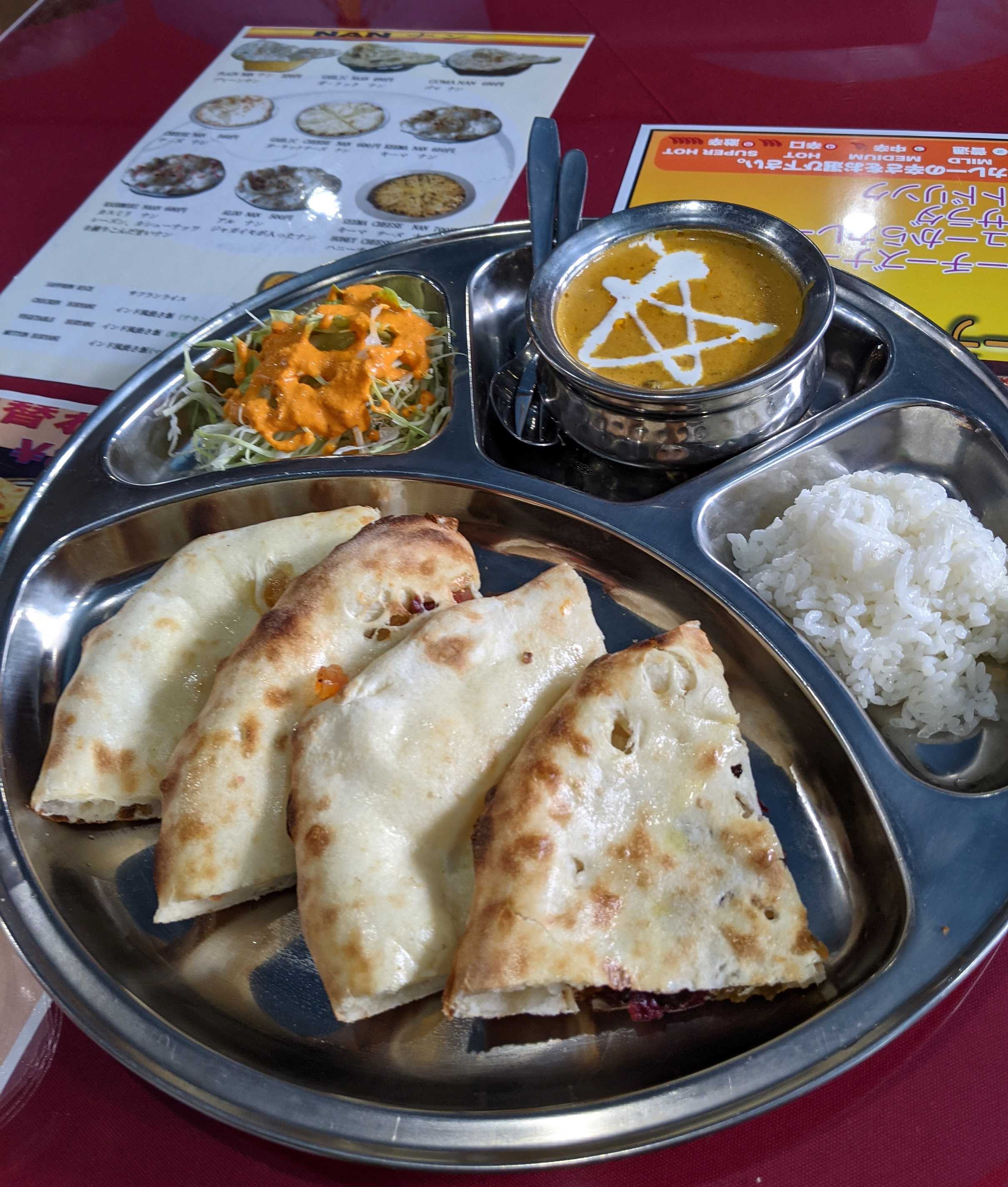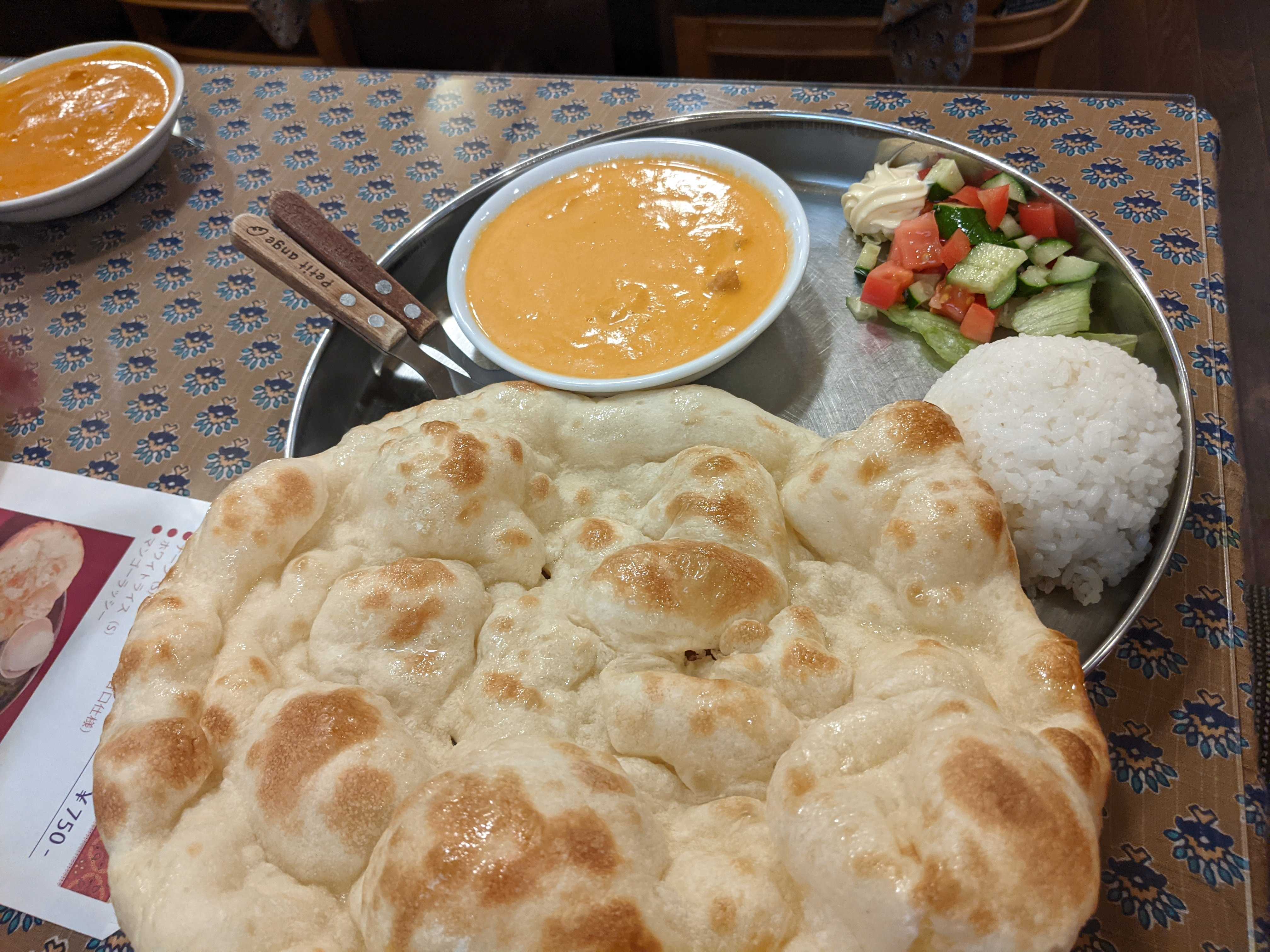 国旗好きの3歳の息子が「このインドとネパールのレストランで食べたい」と言うので、京成津田沼にあるインド料理店のアティティに伺いました。おここのお店のお子様セット、カレーがバターチキンカレーとシーフードカレーから選べるし、ナンも普通のナンとフルーツナンから選べる国旗が好きだからインド料理屋に入ることはたまにあるけれど、大体カレーはバターチキンカレー固定でナンも選べないのに、このお店良いということで、息子はお子様セット(500円税込)シーフードカレーに、フルーツナンとライス、サラダ、ラッシーのセットにしました。息子はナンがあるときはライスは食べないから「いらない」と伝えないといけなかったんだ…あちゃーまぁ私が食べればいっか。インドのカルピスと3歳児に教えたラッシーはお気に入りなのですぐに飲み干してましたwフルーツナンも気に入って、時間はかかったものの、たまにカレーを付けたりして完食。サラダとカレー半分は私が手伝ってなんとか完食。御飯はちょっと量が多くて私も食べきれず…(ごめんなさい)でも3歳児にも美味しかったようで良かったです。私はBランチ(900円税込)を。好きなカレー一種類(チキンサグカレー)とナン(またはライス)、サラダ、パパド、アチャール、タンドリーチキン、好きなドリンク(アイスチャイ)のセット。ナンがめっちゃ大きくて美味し!!薄いところはカリッと、厚いところはもちふわっとしていてほんのり甘い。。。カレーは普通の辛さにしたけど(下から2番目だったかな)、私にちょうど良い感じ。普通だとチョイぴりっとする感じ。どれも美味しかったけど、子供の分を食べたらはち切れそうになったから欲張らずにAセットにしておけばよかった。。。ごちそうさまでした。ナンがかなり大きくてずっしりお腹にたまるから、今度来るときはAセットにしよう。そして子供の分はライスを無しにしてもらおう…。これでナンがお代わり出来るって、強者がいるんだなぁ~…インド・ネパール料理 Atithi(アティティ)千葉県習志野市津田沼2-1-10選べるナン5枚セットパン インディアンブレッド 神戸アールティー 専門店の本格ナン プレーンナン ガーリックナン ハーブナン ゴマナン ほうれん草ナン パラタ チャパティ ロティ 冷凍 まとめ買い お買い得 セット商品