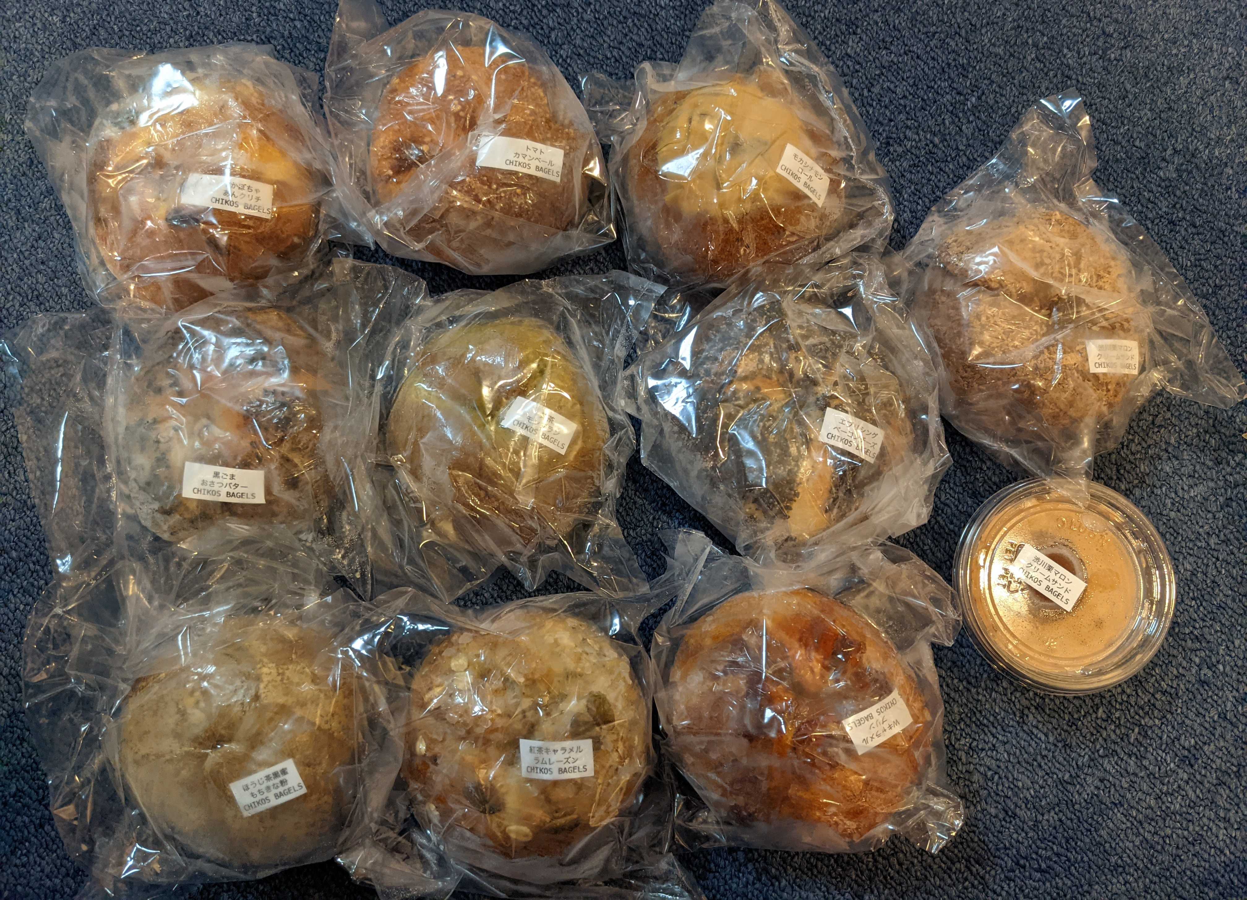 2月にお取り寄せして以来のCHIKOSベーグルスさん(お取り寄せや稀にイベントに出店するのみのお店です)10月17日に応募してから、今か今かと待ち焦がれた麗しいベーグルたちが12月7日に発送されて今日ようやくやってきました。もう冬になりつつあるけど、応募が多かったんだろうなぁ…🌰秋の味覚オールスターセット🌰(3600円+送料)〇黒ごまおさつバター〇ほうじ茶黒蜜もちきな粉〇Wかぼちゃあんクリチ〇紅茶キャラメルラムレーズン〇エブリシングベーコンチーズ〇モカシナモンロール〇Wキャラメルプリン〇抹茶モンブラン〇トマトカマンベール〇渋川栗マロンクリームサンド(クリーム別カップ)の合計10個。相変わらず、美味しそうなものしかない〇黒ごまおさつバター自然解凍→リベイクしていただきました。(チコスさんのベーグルはアルミをかぶせて2~3分くらい焼いた後、アルミを外してかなり強めに焼いてバリッバリにするのが好み)胡麻とお砂糖で甘くて香ばしい表面が美味しいバリッと噛むと最初甘くて、ガリガリ噛むと胡麻せんべいみたいに香ばしいそして、中にもごまがたっぷり練り込まれていてむっちりしっとりしていて、食感も味も美味しい!ちょうどよい甘さでなめらかなさつまいもバターがたっぷり巻き込まれています。単品単品が美味しい上に、全体のバランスも良くてうまーーー久々のチコスさんは幸福感半端ないなぁ〇モカシナモンロール迷った末に自然解凍のみでいただきました。上のアイシングが溶けたら嫌だから。ほんのり苦味の珈琲生地はむぎゅって詰まっていてヒキが合って美味し焼いても美味しいけどそのままでも美味しいんだな~…。でもやっぱり焼いた方が好みだけど。生地にはシナモンシュガーとチョコチップが巻き込まれていて、トップにはシナモンアイシング。コーヒー生地にぴったりの甘味が追加されてめっちゃ美味しい〇渋川栗マロンクリームサンドベーグルは自然解凍→リベイクして、マロンクリームは冷凍のまま挟んでいただきました。ココナッツがたっぷりトッピングされたココア生地はホワイトチョコが巻き込まれています。ガリッとしてムチィっとしてココナッツがシャクシャクで相変わらず美味しい食感クリームをサンドしなくても文句なしに美味しいクリームはいつものクリチベースじゃないんだけど、濃いマロンペーストとクラッシュした栗にクルミまで入っていました大きな渋川栗もホクホクで美味しい。合わせて食べると贅沢な美味しさでした〇抹茶モンブラン自然解凍→リベイクしていただきました。バリっとむぎゅっとで美味しいほんのり苦味のある抹茶生地に、ホワイトチョコとモンブランペーストと角切りの栗が巻き込まれています。風味がしっかりしていて美味しい抹茶生地とろけたホワイトチョコと滑らかモンブランクリームの甘味が抹茶の苦味を中和してちょうどいい。ときどき当たる角切り栗も美味しい〇Wキャラメルプリン自然解凍→リベイクしていただきました。バリっとした表面はキャラメルとザラメ(アルミ載せてたからかほとんど溶けなかった)がたっぷりでザラメをカリッと噛むと甘くて…全体にほろ苦くてプリンの底のキャラメル味で美味しい中のしっとりむちっとした生地にはカスタードプリンにクリチが巻き込まれている感じ?全体にキャラメルのほろ苦さが効いた中で、まろやかなフィリングが美味しかった~チコスさんはバランス最高です〇ほうじ茶黒蜜もちきな粉自然解凍→リベイクしていただきました。ガリッとむぎゅーっとした生地はほんのりほうじ茶が香って、たっぷりと黄な粉がトッピングされていてほんのり焦げて香ばしい中には粒あんと、もちもちの白玉、それに黒ごまペーストが入っていました胡麻好きだから嬉しいサプライズそしてめちゃくちゃ胡麻の風味が効いていて美味しい和の食材同士で良いバランス〇紅茶キャラメルラムレーズン自然解凍→リベイクしていただきました。しっかり香る紅茶生地はバリっとムギュっとして相変わらず美味しくって、表面のザラメもガリッと噛むと甘くて美味しいし、かぼちゃの種やオーツ麦もリベイクで香ばしくなって美味しい中にはとろけたキャラメルの絡まる良い香りのラムレーズン紅茶とラムとキャラメルで香りも味も最高に美味しい組み合わせでしたこれも大好き〇Wかぼちゃあんクリチ自然解凍→リベイクしていただきました。優しい味のかぼちゃ生地はバリっとしてむぎゅっと、ほんのりふわっと。かぼちゃの種とアーモンドスライスがトッピングされて更に香ばしい中には南瓜ペーストと粒あんとクリームチーズ入り。しっかり南瓜の味がして、餡子とクリチが入ることで一気にチコスさんっていう感じに洗練されてレベルアップ美味しかった~トマトカマンベールはトマトもチーズも好きな3歳児がニコニコと笑顔で食べました。すっごく美味しかったみたい。エブリシングベーコンチーズも3歳の息子が一人で食べました。主人は遠慮して一個も食べ
