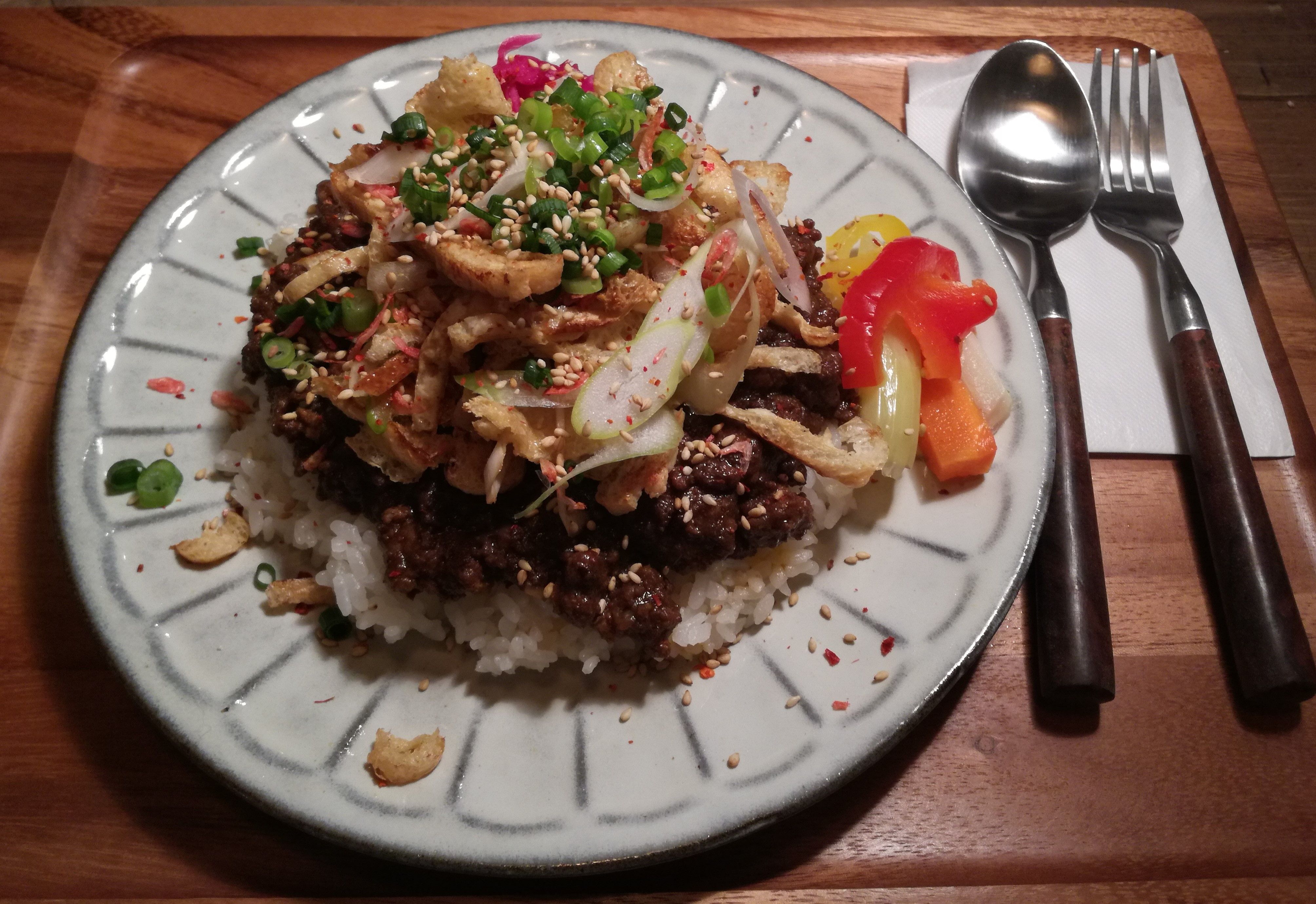 クミンやカルダモンがめっちゃ香ってスパイスがかなり本格的なのに、和の油揚げ・葱・桜海老ともあっています。