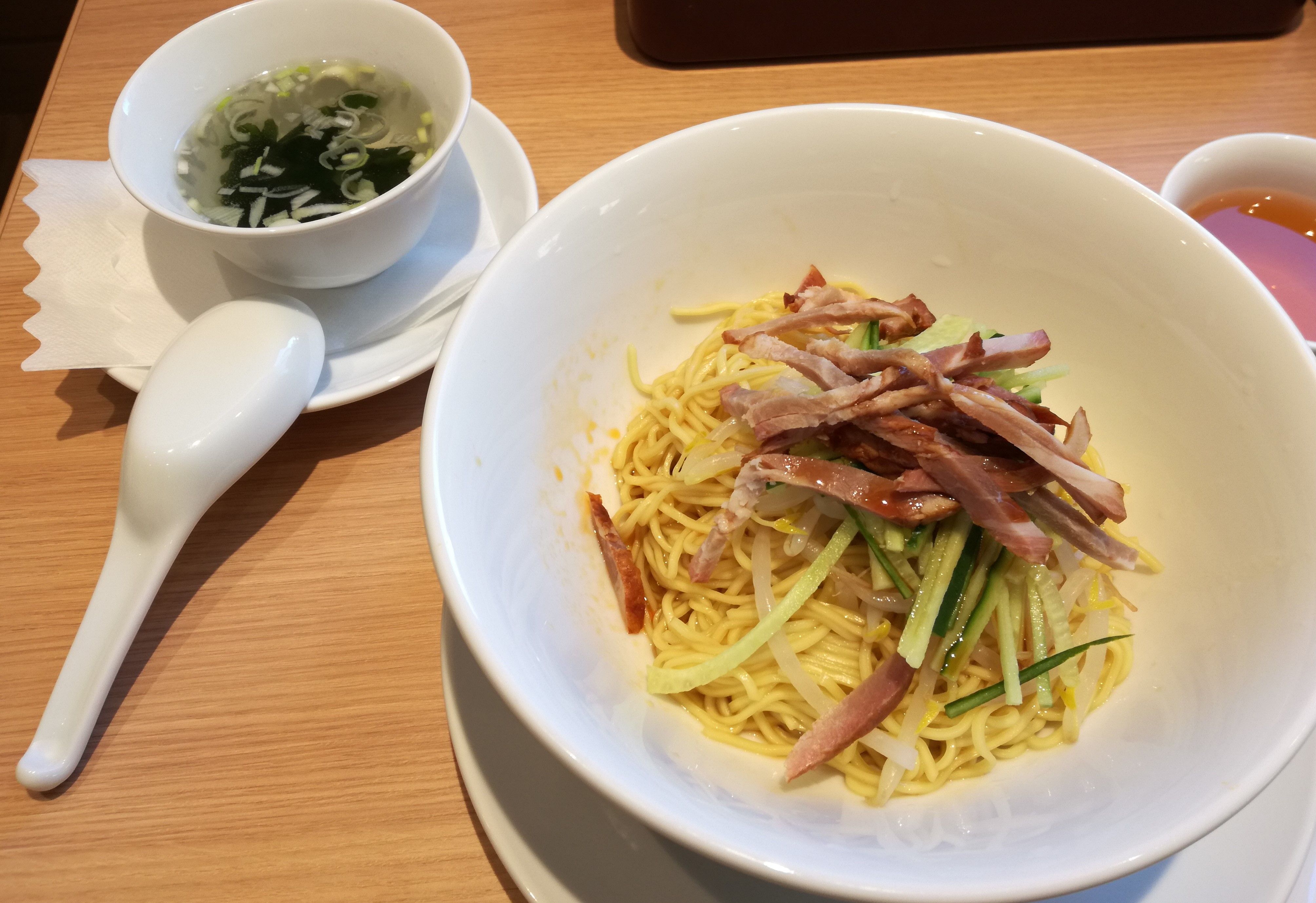 甘味噌っぽい味のチャーシューに、胡瓜、もやしが具材のシンプルな乾拌麺。