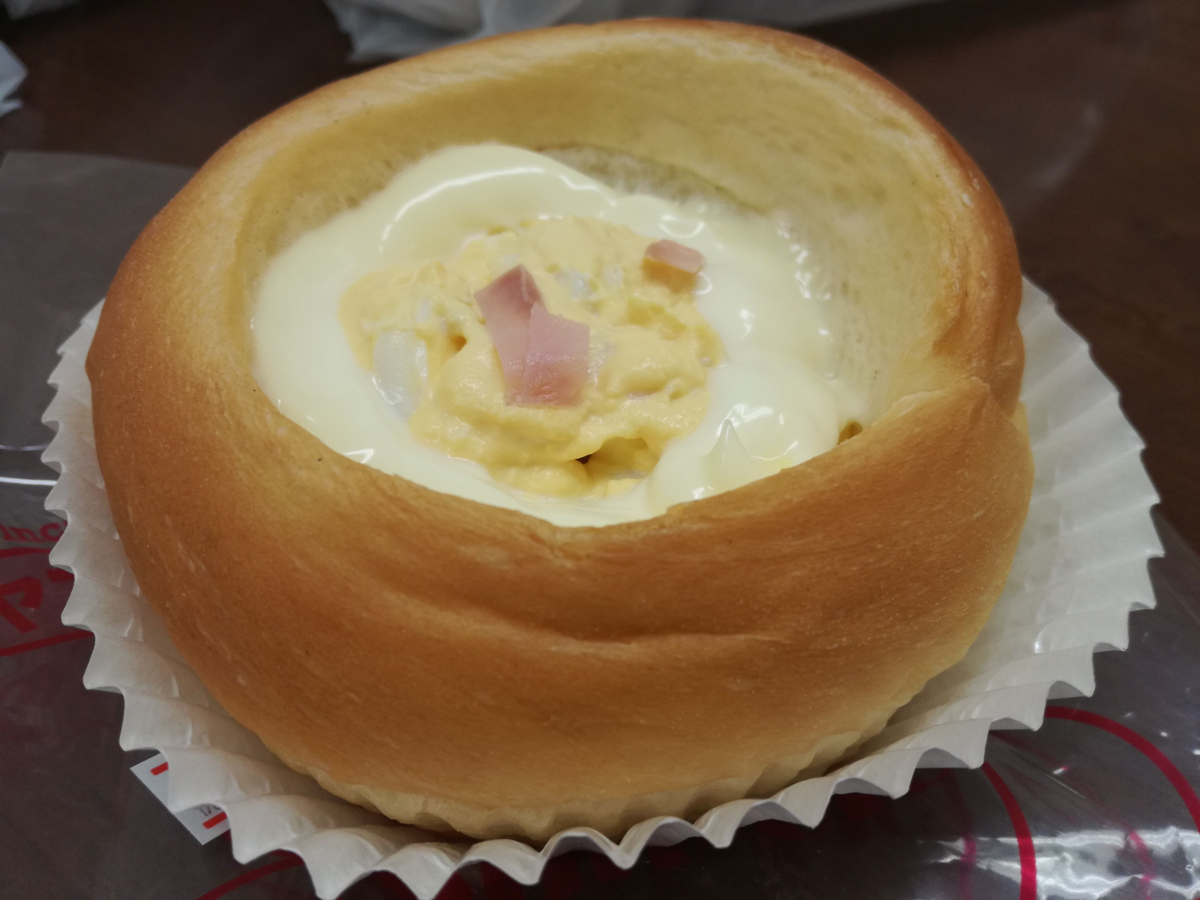 ふわっと軽く、甘いパン生地の中にマヨネーズたっぷりの卵サラダ。